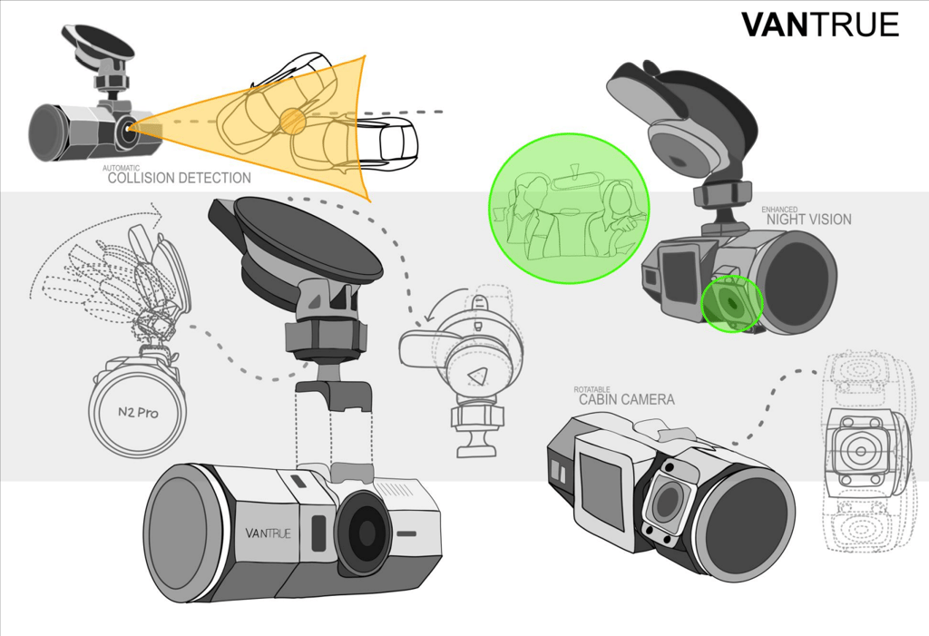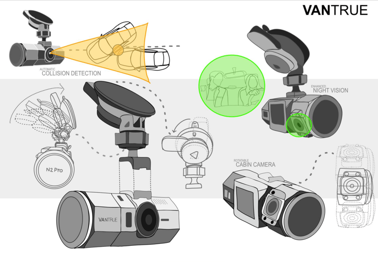 Designed using Affinity Suite to showcase the five features of the VanTru dash camera.