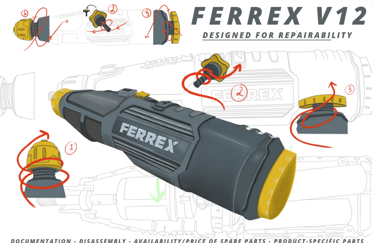 Redesign of Ferrex V12 Dremel for the task of easy repairability to prolong lifetime use.